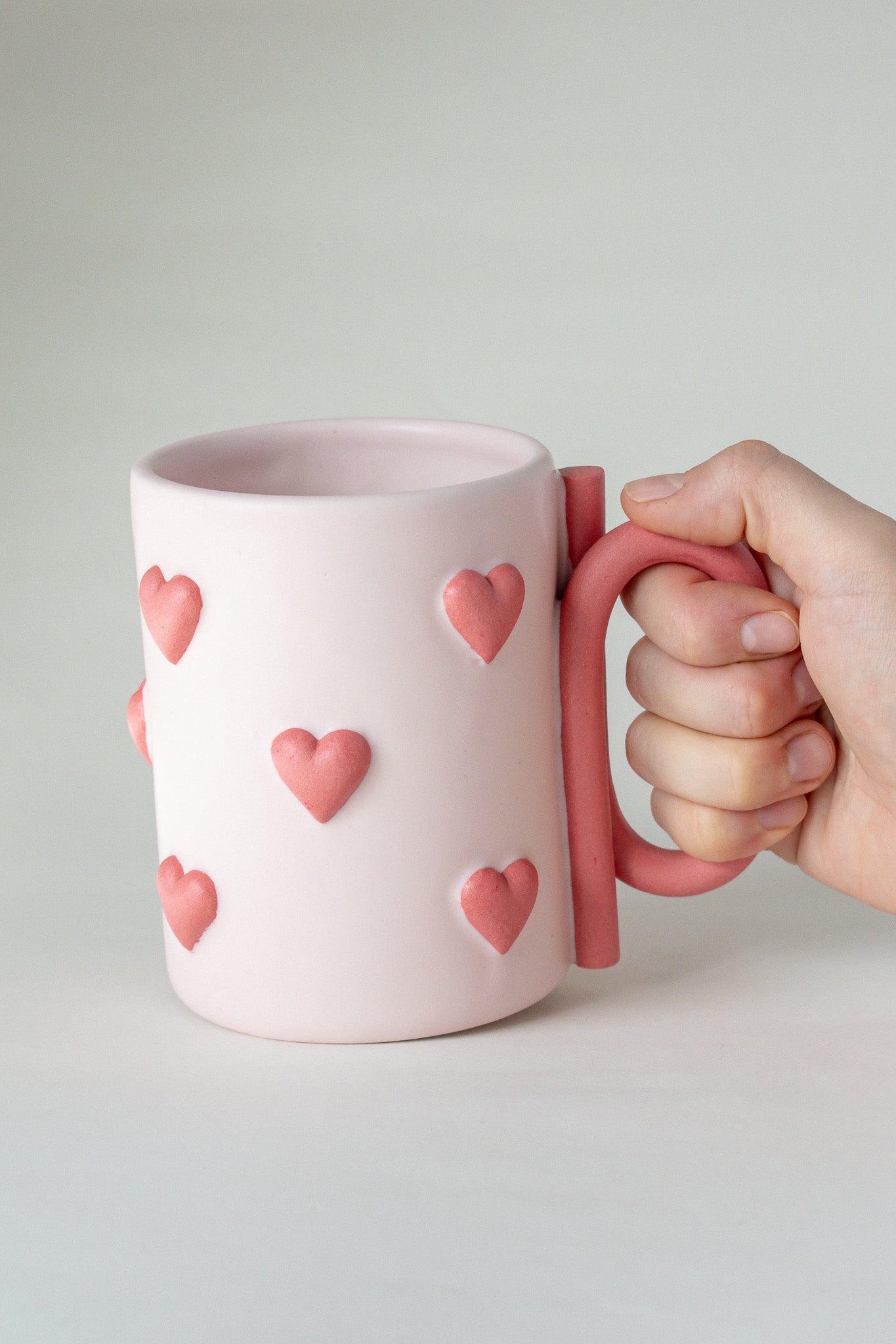 This mug is like holding a little heartbeat of love in your hands—but not in a weird way. Its soft pink glaze is a gentle blush, like the warmth of a sweet confession, while the red hearts dance across it like love notes scattered in the breeze. Every sip feels like a cozy hug, a quiet moment wrapped in affection, like curling up with a love letter written just for you. It’s more than just a mug; it’s a daily reminder that love—big or small, grand or simple—deserves to be cherished, one warm sip at a time.