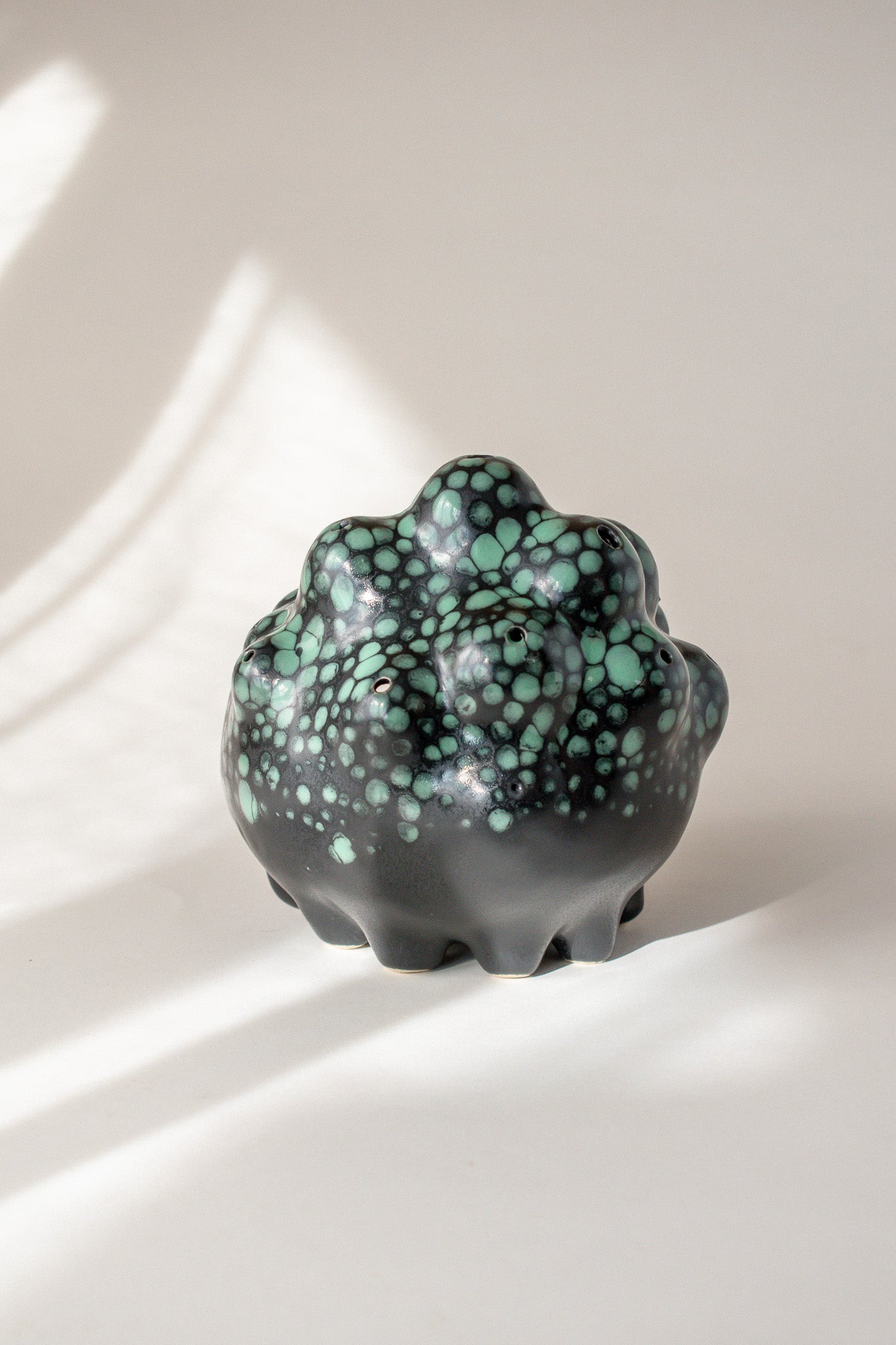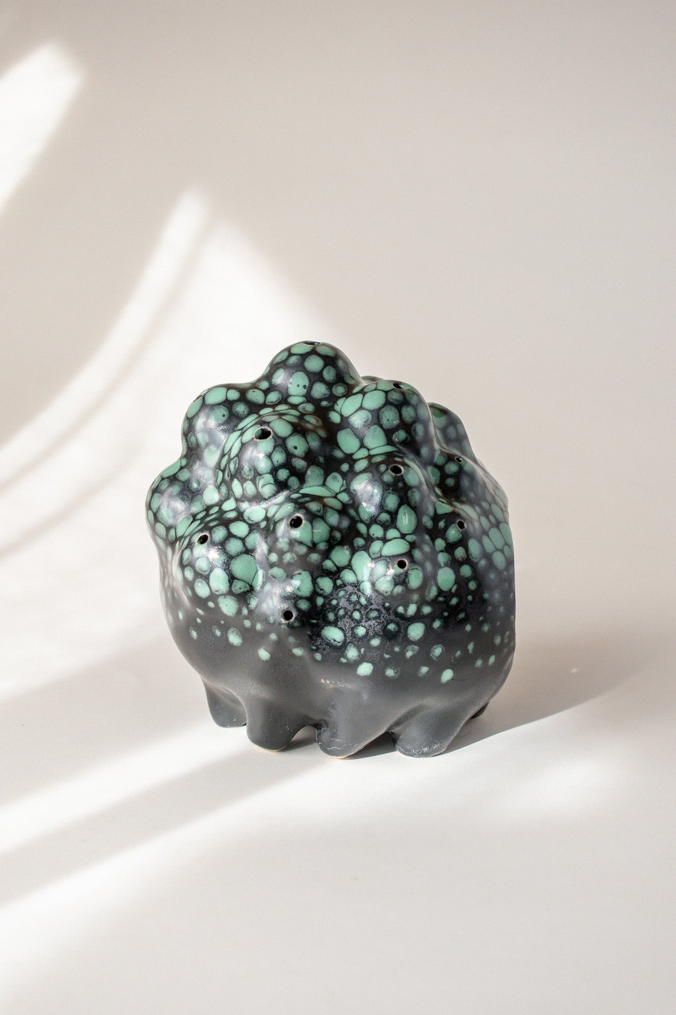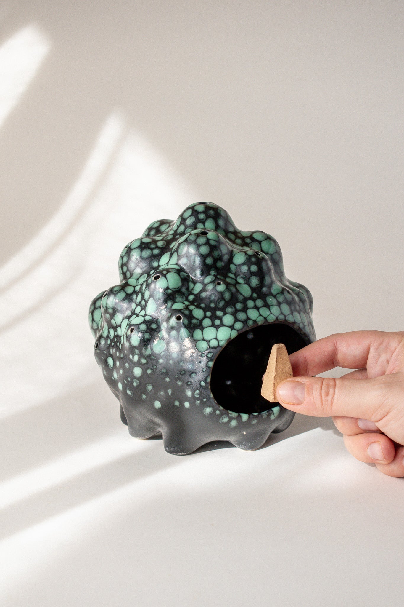 This cursed little creature has bubbled up from the stygian abyss to hold your burning incense and dispense the smoke out of its hole filled head or hold a small candle to provide spooky lighting to your magick rituals.