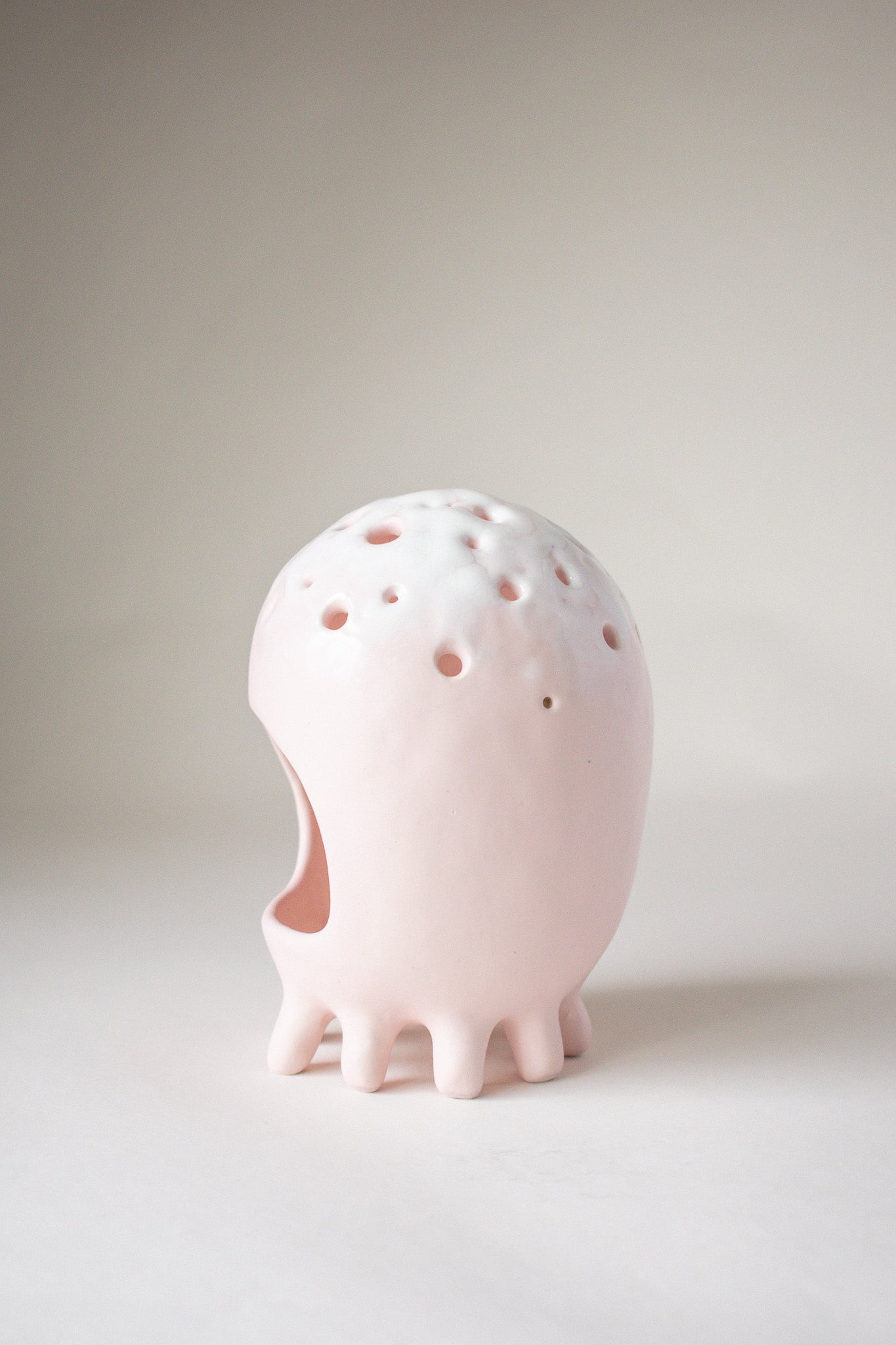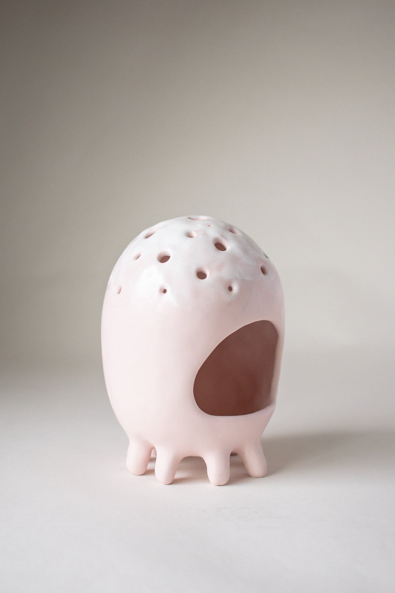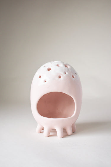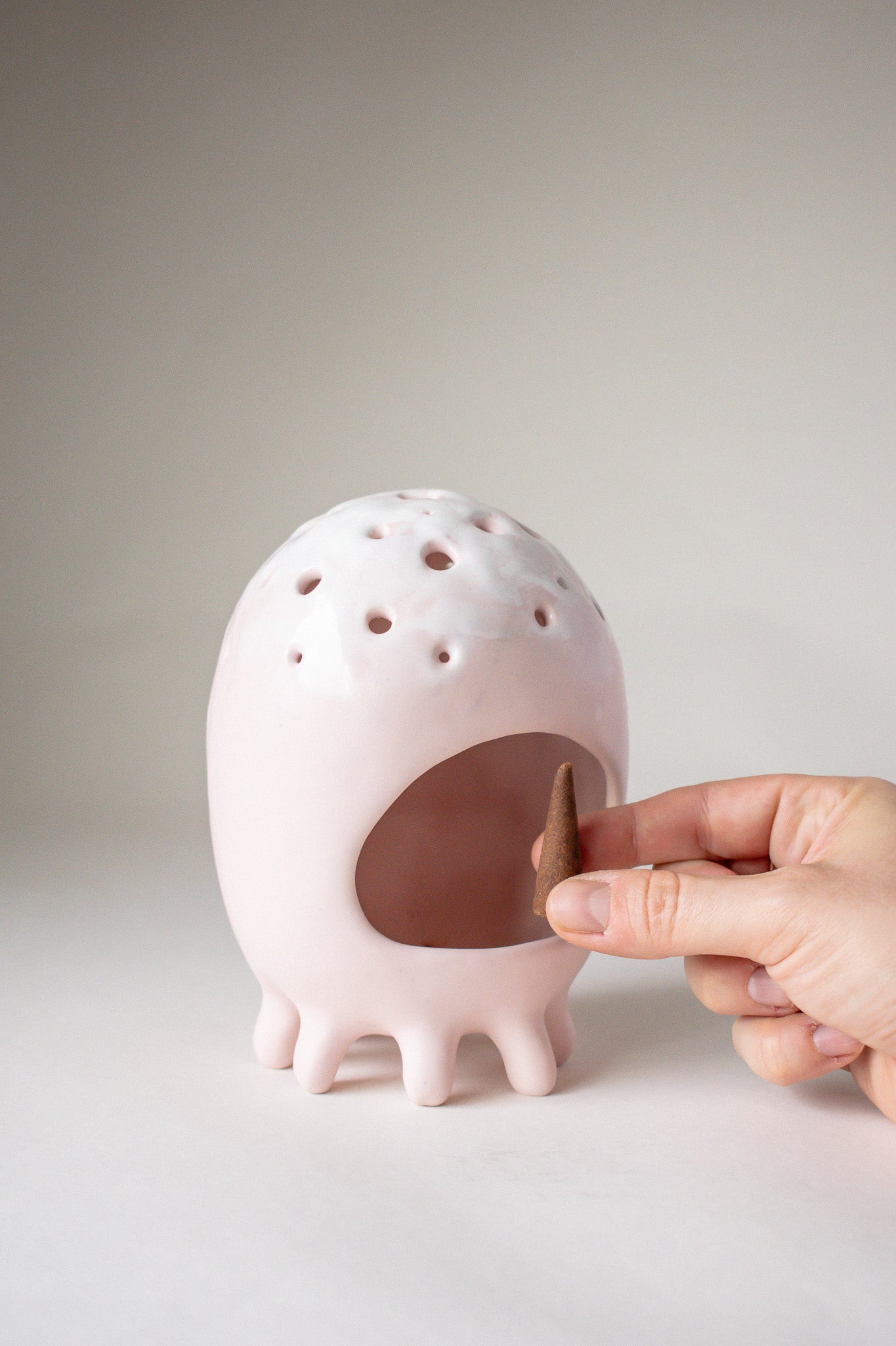This cursed little creature has bubbled up from the crushing depths of the astral abyss to hold your burning incense and dispense the smoke out of its hole filled head or hold a small candle to provide spooky lighting to your magick rituals.