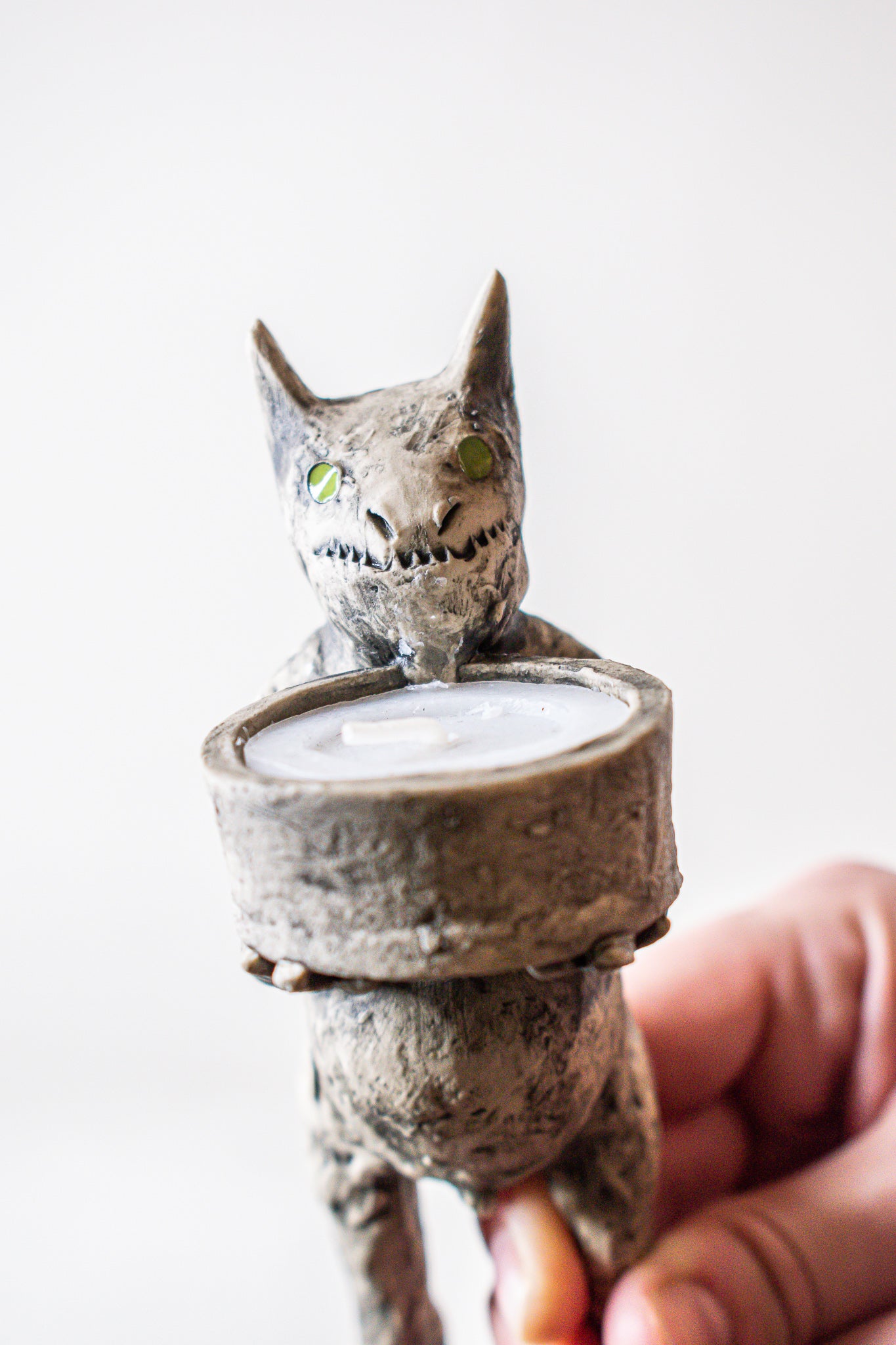Tea light included with this one-of-a-kind ceramic sculpture.