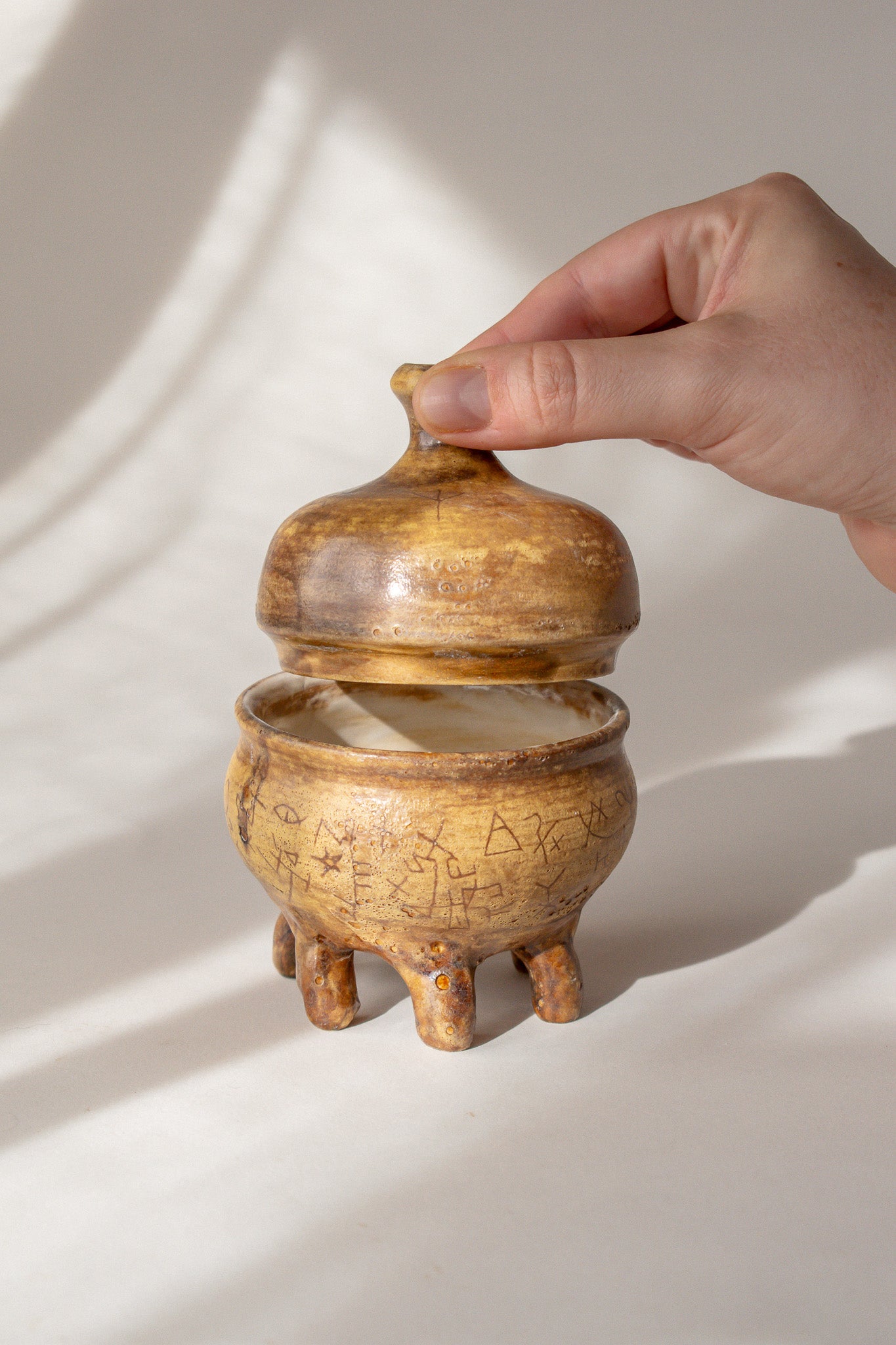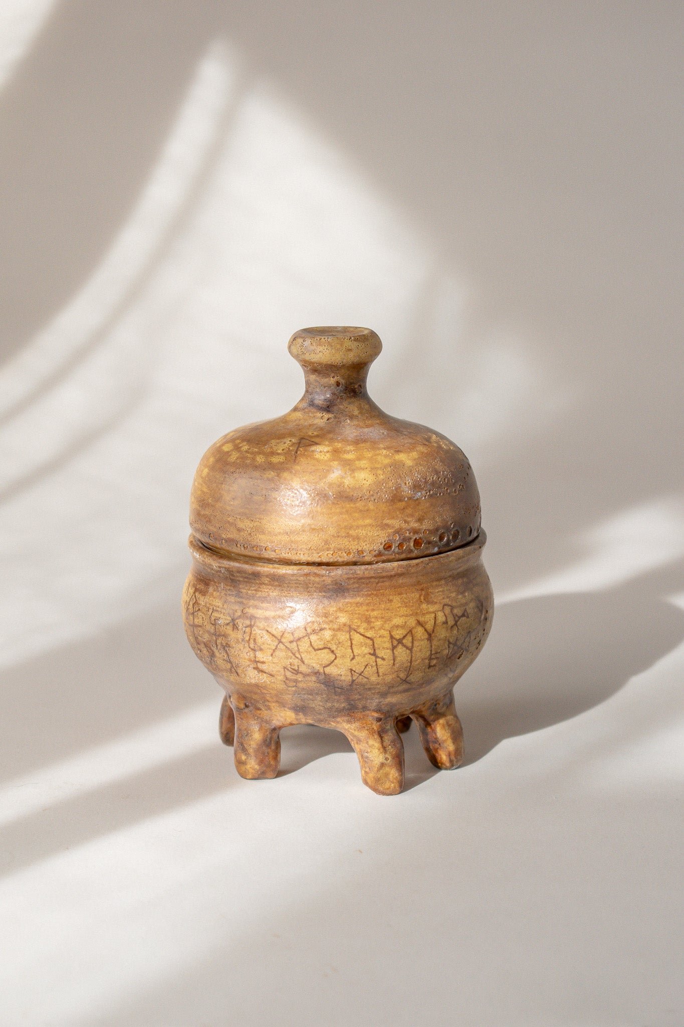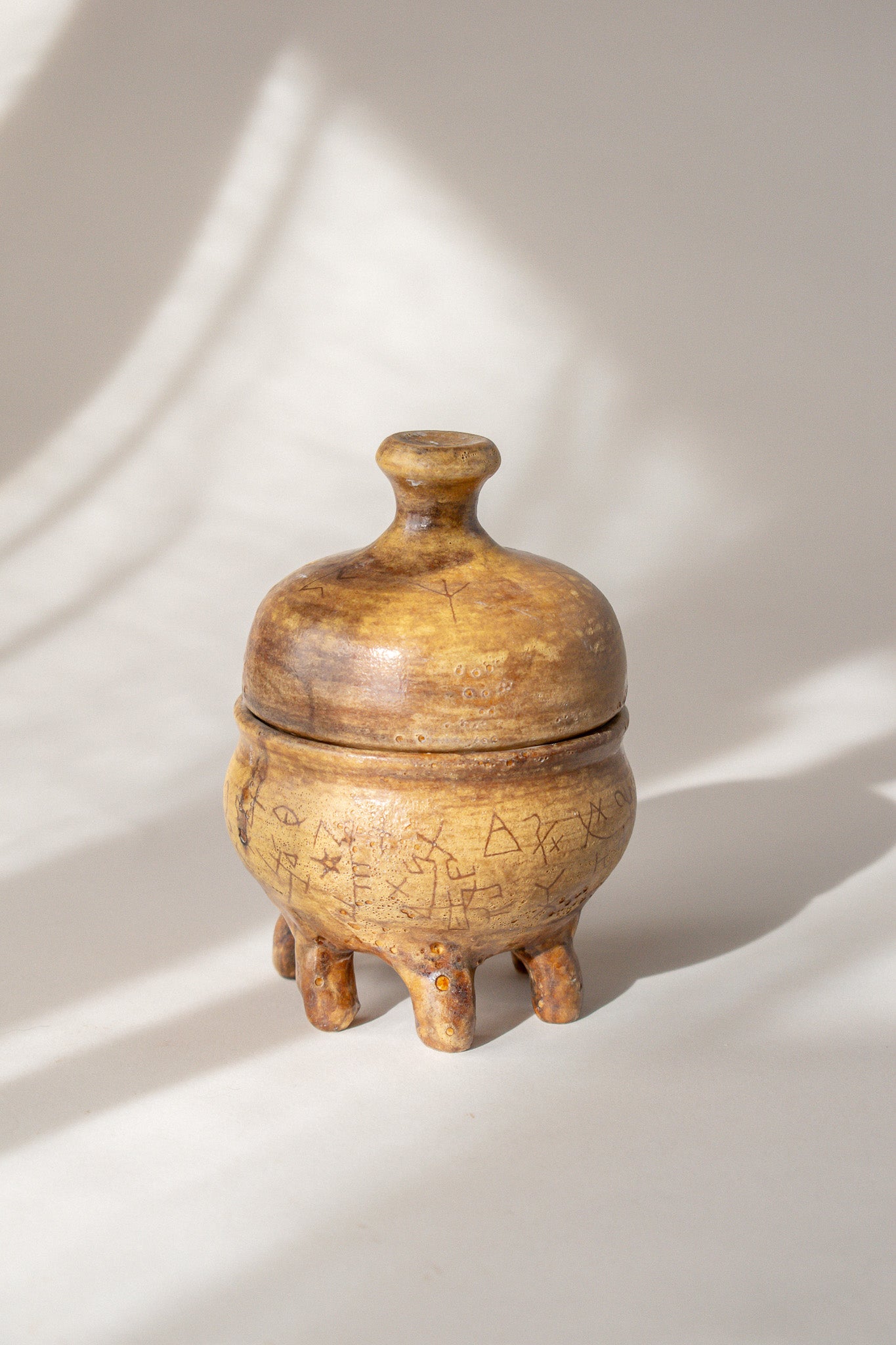 This jar has crawled forth from the ruins of a forgotten antediluvian realm! Perfect for storing your talismans, trinkets and baubles infusing them with magical energies!