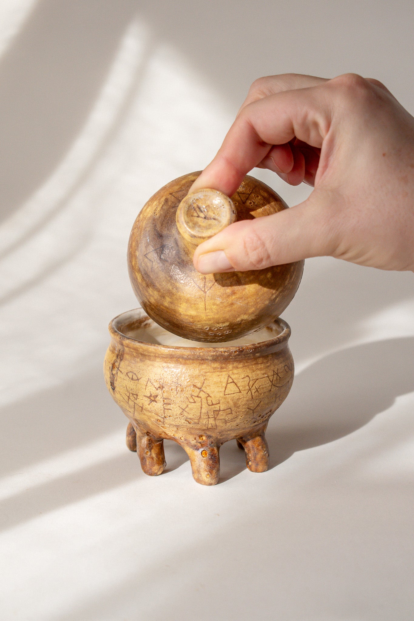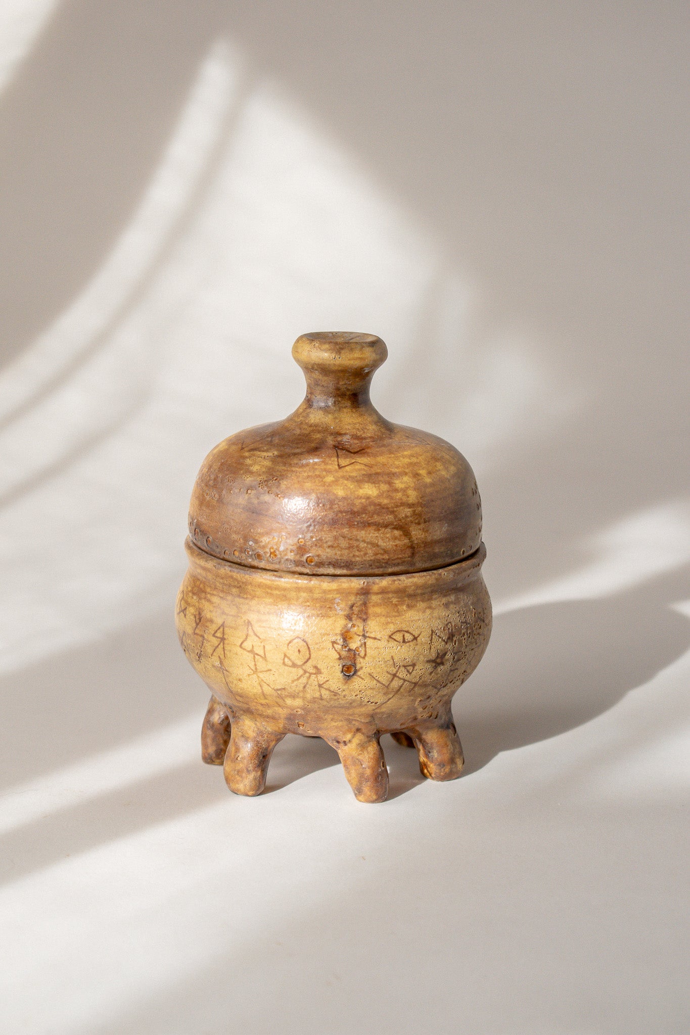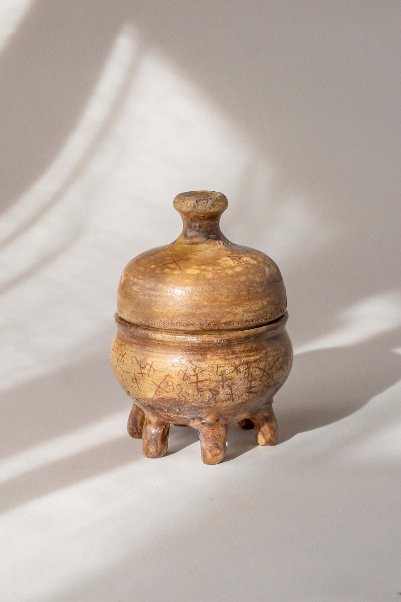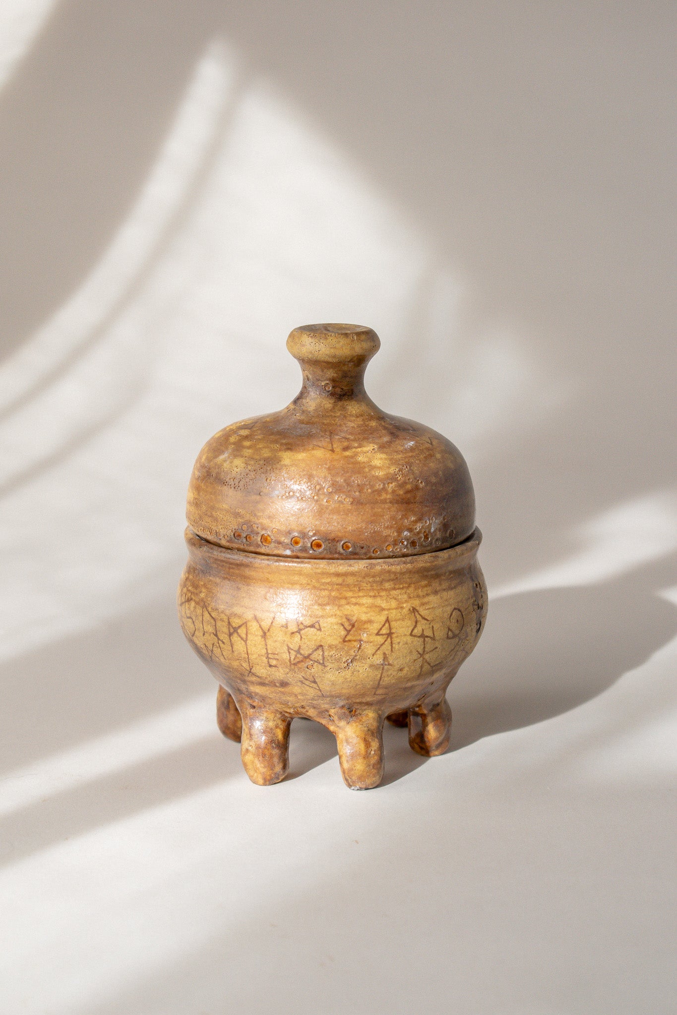 This jar has crawled forth from the ruins of a forgotten antediluvian realm! Perfect for storing your talismans, trinkets and baubles infusing them with magical energies!